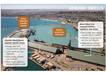 Five years ago Geraldton Port's shipping capacity was sitting at five million tonnes per annum; that included iron ore, grains, fertilisers, metals, fuels and mineral sands.