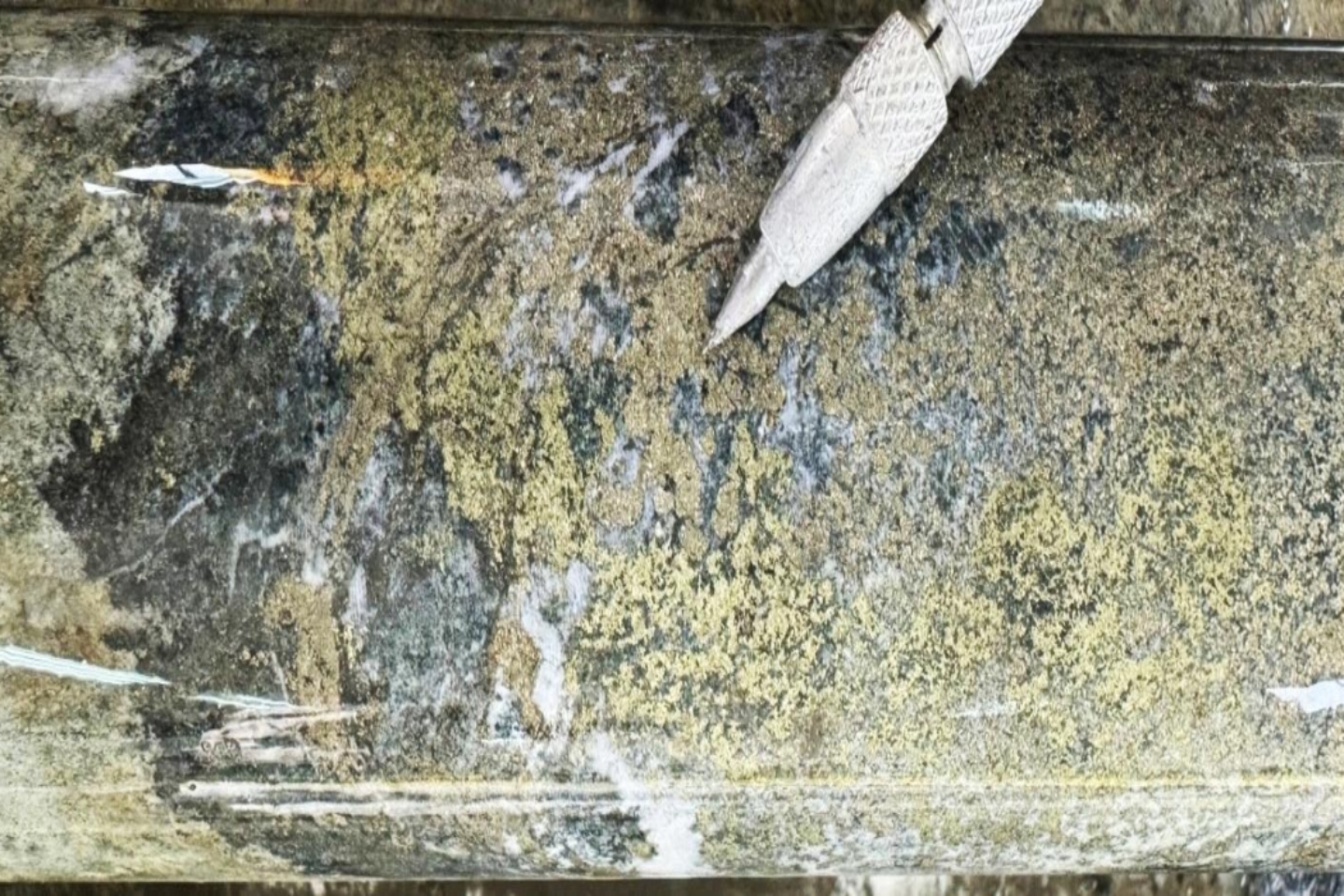 The company’s first two drill holes both punched into huge, mineralised zones up to 265m wide, which were each laced with large high-grade sweetener sections.